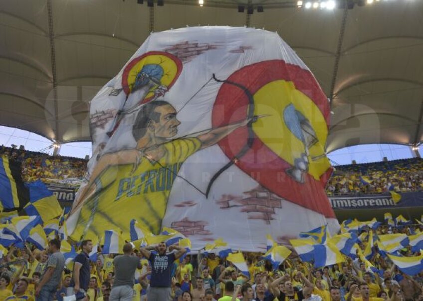 Ultraşii prahovenii au pregătit o nouă coregrafie 3D de zile mari. De această dată au înfăţişat pe o pînză un arcaş care ia la ţintă trofeele din fotbalul românesc.