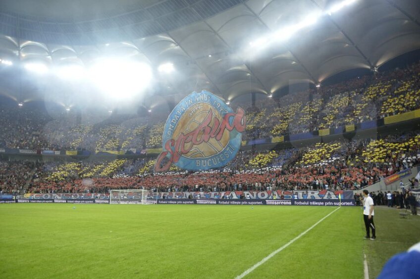 La începutul partidei, steliştii au arătat prima coregrafie 3D din istoria clubului, un logo vechi, în forma unei mingi.