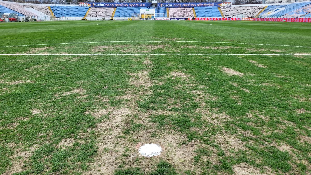 Șumudică n-a scăpat de marea temere! Cum arată gazonul de la Buzău, cu o oră înainte de Metalul - Rapid