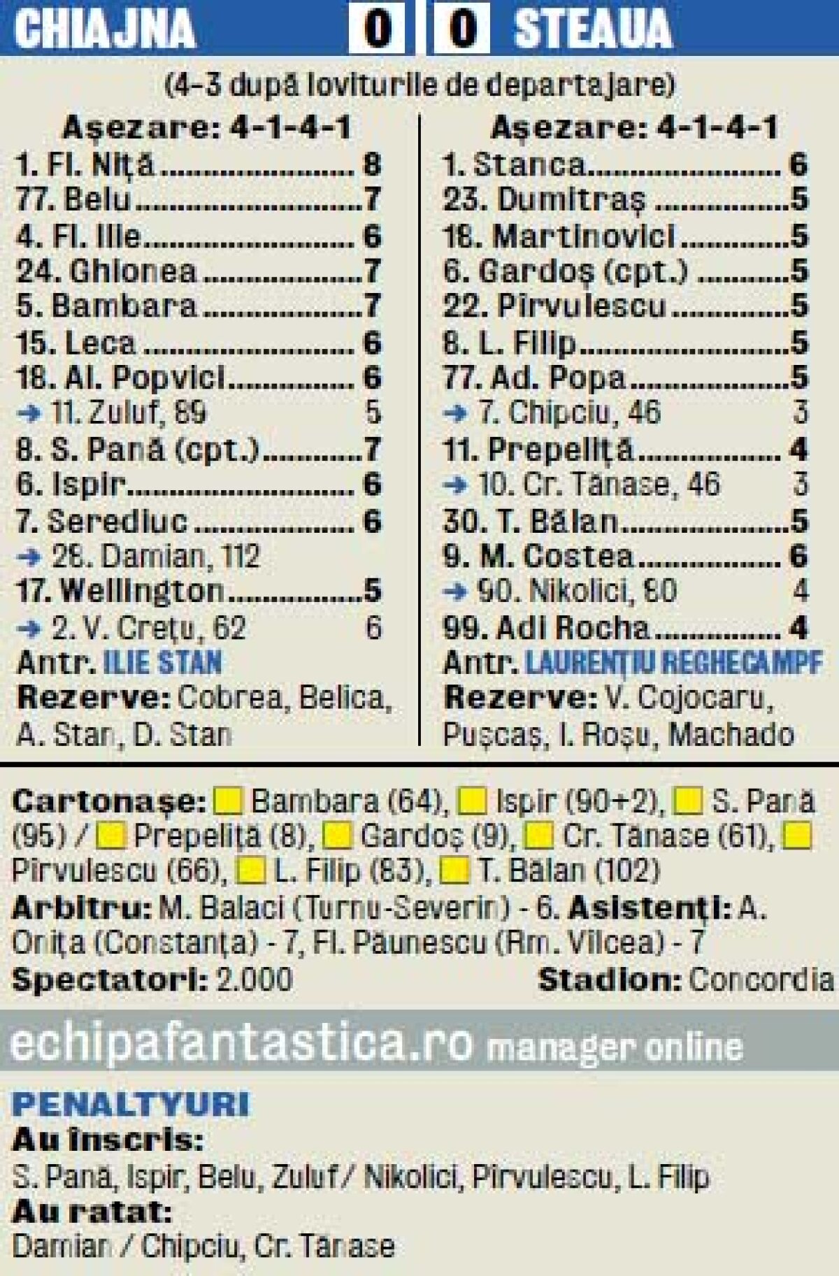 Rocada mică » Steaua a părăsit din nou Cupa României din faza optimilor de finală, 3-4 la penalty-uri cu Chiajna