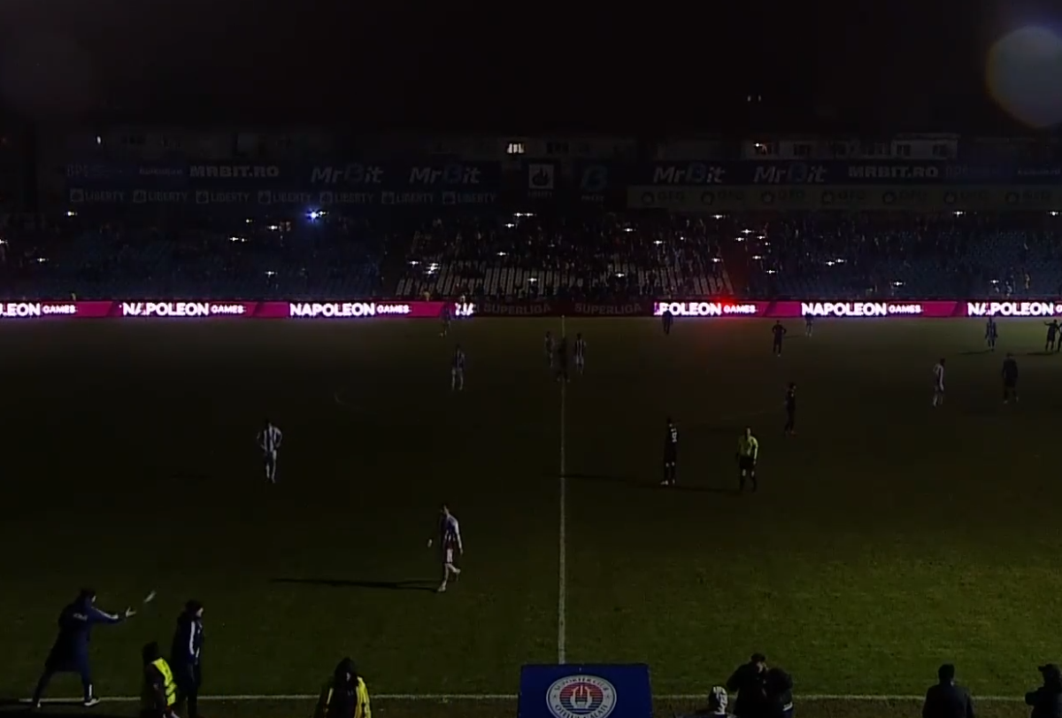 Nocturna stadionului din Galați a căzut când mai erau doar câteva minute de disputat din meciul Oțelul - Csikszereda, din runda 23 din Superliga. Tabela de marcaj indica scorul de 3-0 pentru gazde.