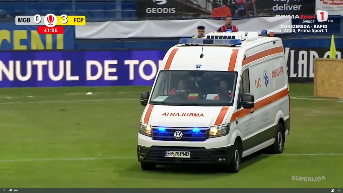 : Accidentare horror a tușierului la Metaloglobus - Petrolul. FOTO: captură Prima Sport