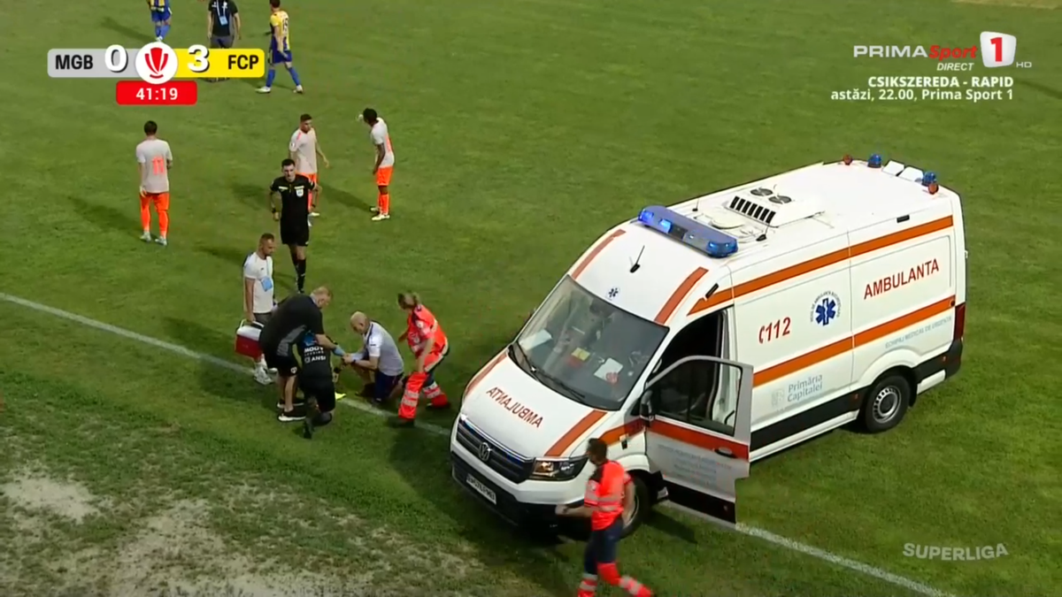: Accidentare horror a tușierului la Metaloglobus - Petrolul. FOTO: captură Prima Sport