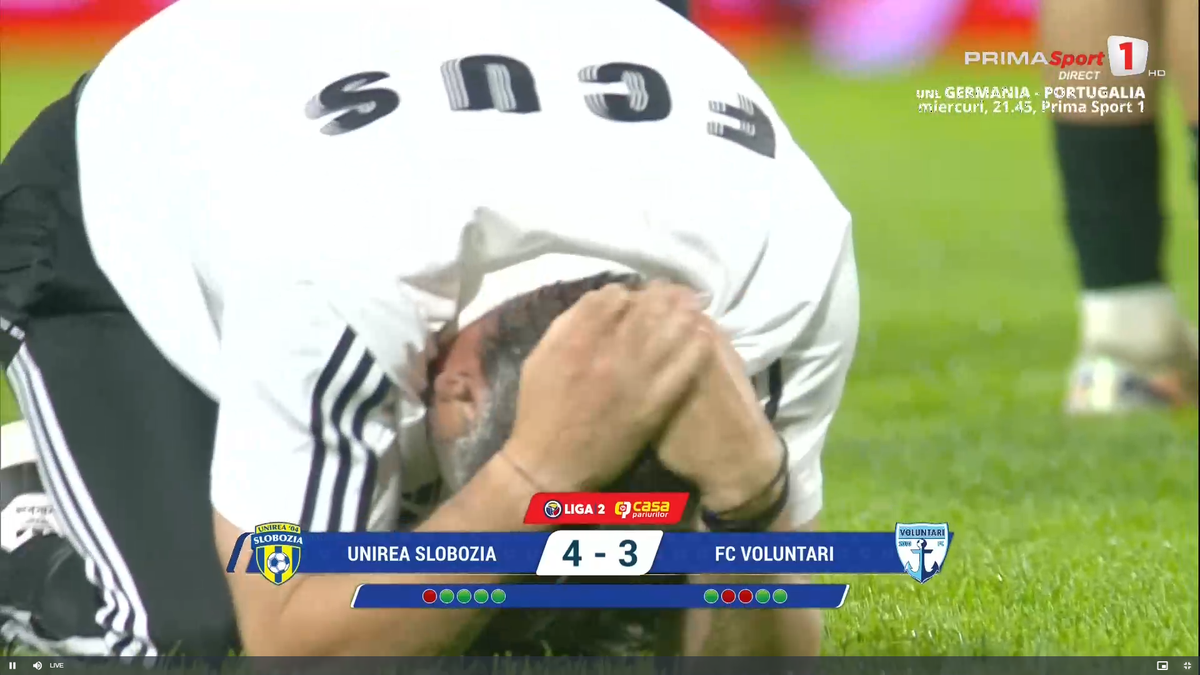 : Imagini de colecție cu Adrian Mihalcea după ce a salvat-o pe Unirea Slobozia de la retrogradare. FOTO: captură Prima Sport