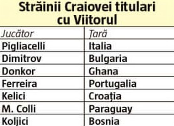 Craiova nu doar că a propus cel mai mare număr de străini în primul "11", dar cei 7 provin din 7 ţări diferite, de pe 3 continente: Europa, Africa, America de Sud. În repriza secundă au mai jucat alţi 2 străini, croatul Martici şi fotbalistul din Insulele Capului Verde, Nuno Rocha.