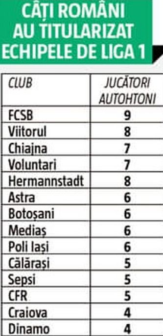 În plus, schimbările din repriza secundă au adus pe teren alţi 2 români, pe Moruţan şi Florentin Matei, astfel că FCSB e singura dintre cele 14 formaţii care poate alcătui o echipă întreagă, exclusiv din români, dintre jucătorii care au evoluat în runda din weekend-ul trecut.
