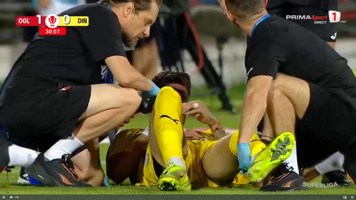 Foto 19/22 : Andrei Mărginean s-a accidentat în Oțelul - Dinamo. FOTO: captură Prima Sport