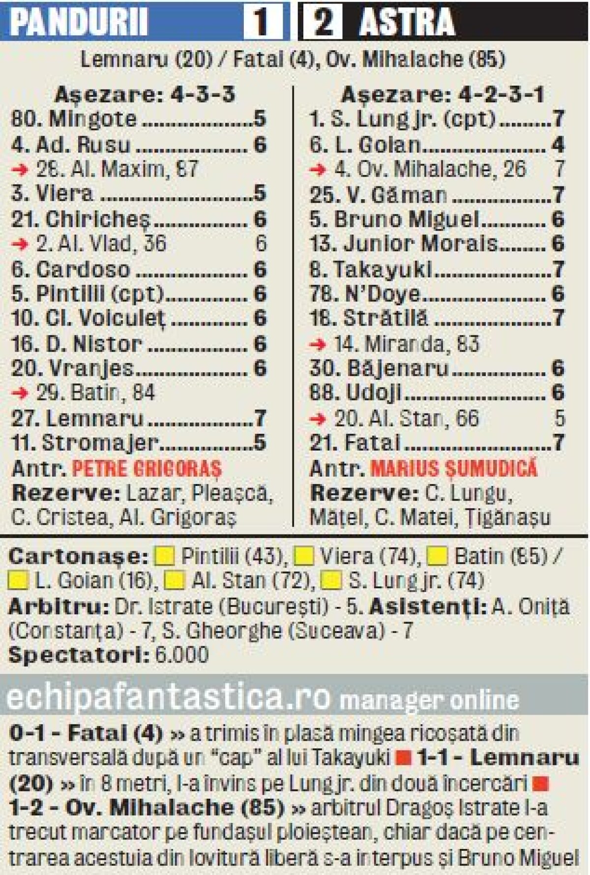 Astra a cîştigat la "ruletă" un meci spectaculos în care Pandurii au ratat cu carul