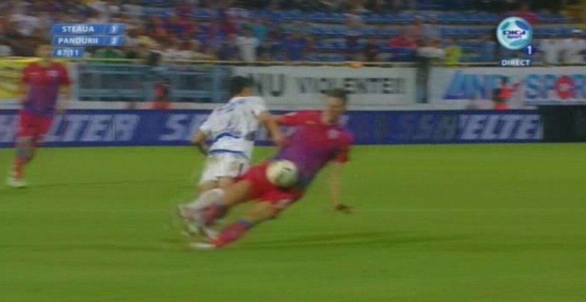 : Băcilă a fost dus direct la spital. Fractura de tibie şi peroneu îl va ţine în afara gazonului pînă în 2012. Captură TV Dogi Sport