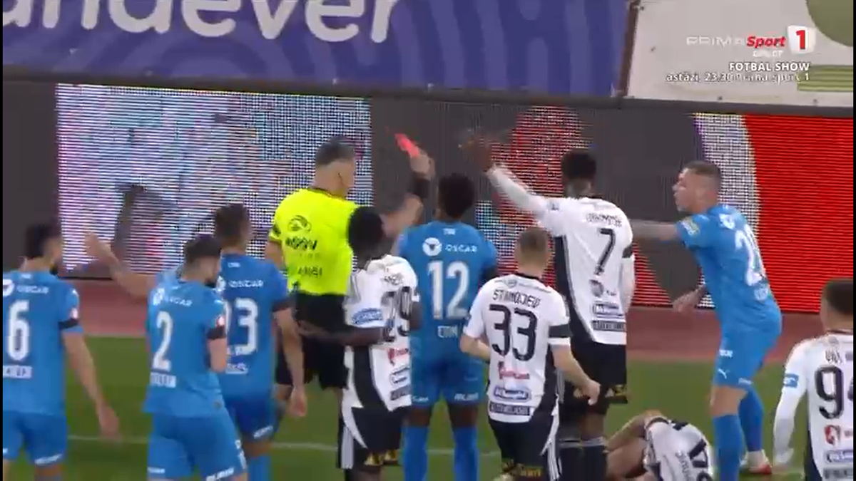 Coșmar în 5 minute pentru Craiova: Istvan Kovacs a scos direct cartonașul roșu