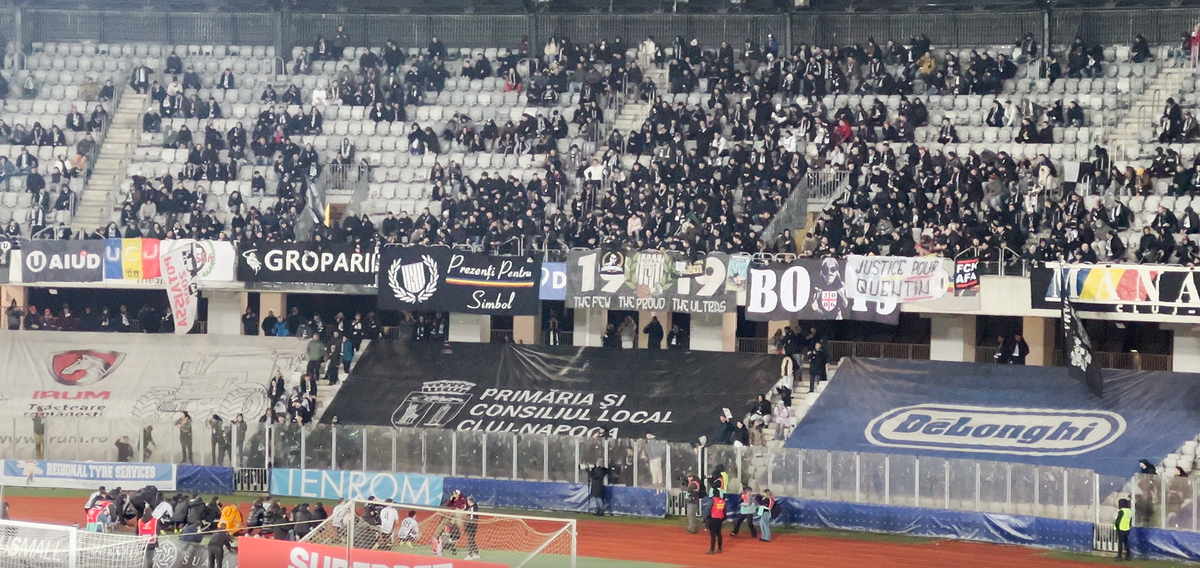 Totodată, pe finalul meciului, galeria Universității a cântat și celebrul imn al anilor ’70-’80, fredonat doar la meciurile importante sau la momente speciale: „Pe valea Someșului, nu e echipă ca și U”.