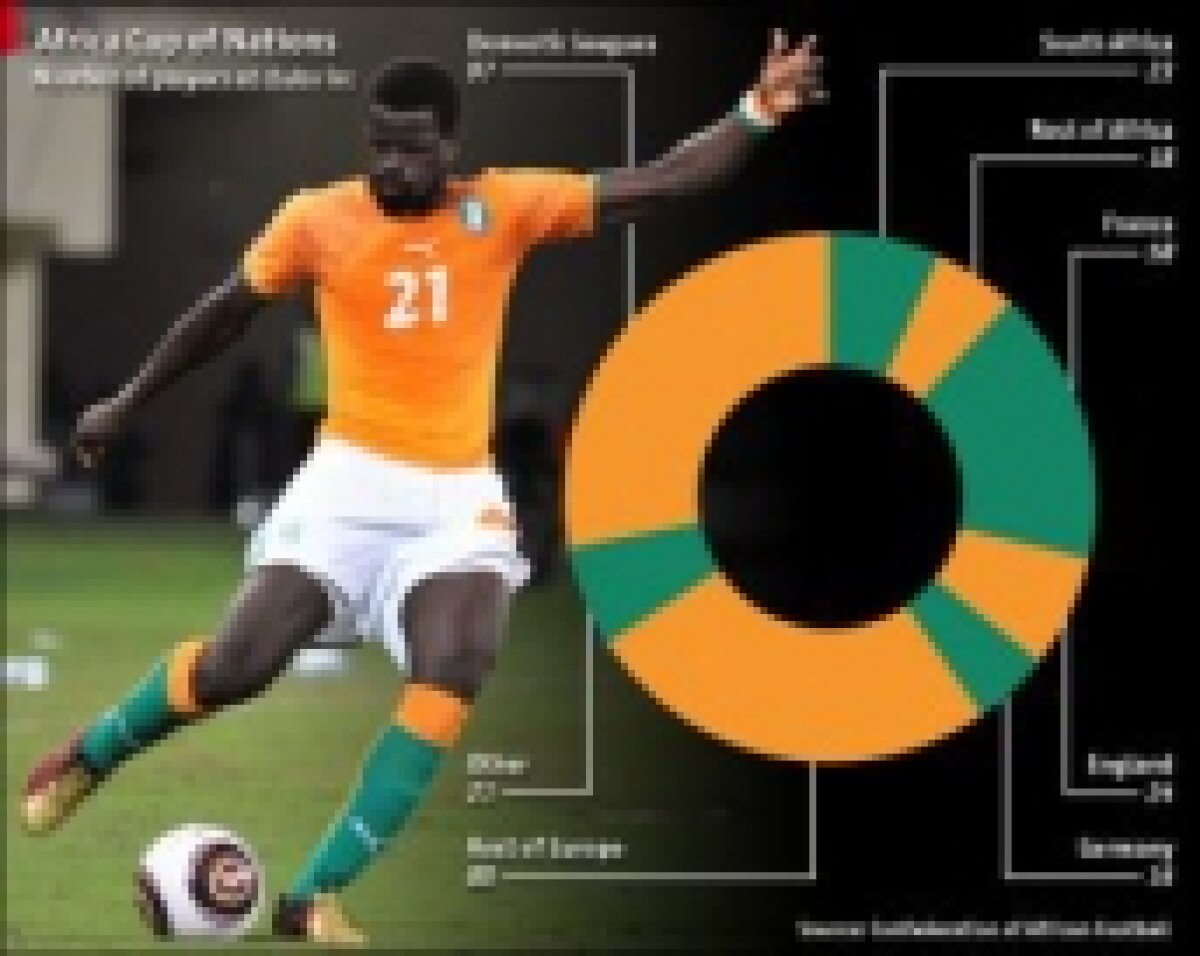 Cluburile din Franţa sînt cea mai populară destinaţie, 58 de fotbalişti evoluînd în Hexagon, urmate de cele din Anglia, cu 24.  (Togo avea doar doi jucători care evoluează în ţara natală şi 9 care joacă în Franţa). Africa de Sud, gazda din acest an al Cupei Mondiale, e cel mai mare importator de pe continent, dar naţionala Africii de Sud a ratat calificarea la CAN.