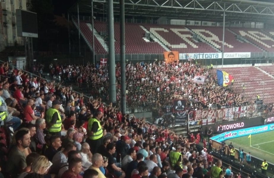 Echipa lui Florin Bratu e susținută de la Cluj de o galerie impresionantă. În sectorul oaspeților sunt aproximativ 500 de dinamoviști, care ocupă și o mică parte din Tribuna a II-a.