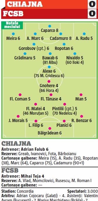 Cinci steliști au avut evoluții jenante la Chiajna și au primit cele mai mici note din caseta tehnică din Gazetă, 4: