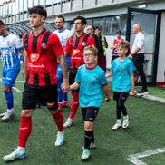 FOTO. Decizie controversată la Csikszereda - Universitatea Craiova. Copiii au purtat tricouri cu Ținutul Secuiesc
