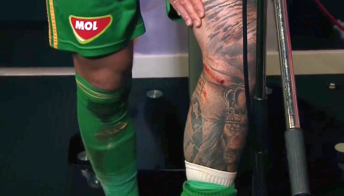 : Cum arată piciorul lui Niczuly, după contactul cu Luckassen, foto: captură Prima Sport
