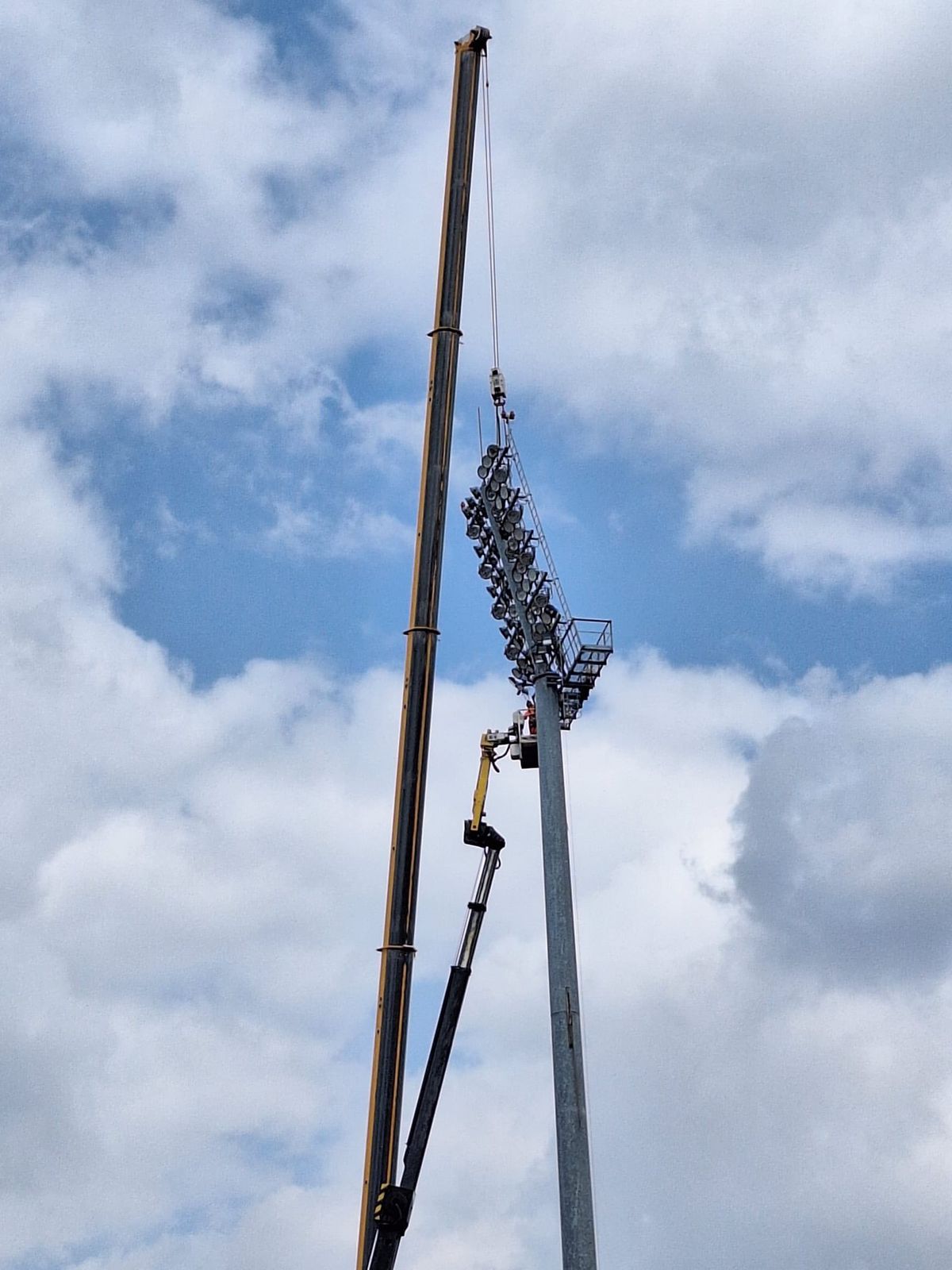 : Demontarea instalației de nocturnă de la stadionul Dinamo. // FOTO: Facebook @Noul Stadion Dinamo