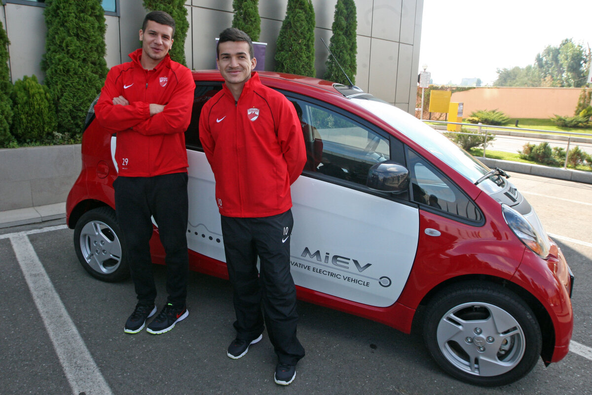 Ionuţ Negoiţă, acţionarul majoritar al "alb-roşilor", şi fotbaliştii Cosmin Matei şi George Ţucudean, cunoscuţi pentru pasiunea lor pentru maşini puternice, au testat astăzi micile autoturisme electrice.