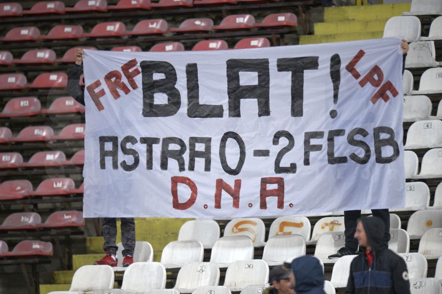 Ultrașii dinamoviști din Peluza Sud au afișat la meciul de azi un banner în care solicită FRF și LPF să se sesizeze cu privire la duelul Astra - FCSB: