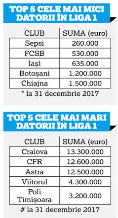 Un club de Liga 1 care surprinde prin ceea ce propune în raportul financiar pe 2017 e Sepsi, club ce a jucat în liga secundă în prima jumătate a anului trecut, apoi a promovat pe prima scenă. A cheltuit numai 2,2 milioane de euro, doar Juventus Bucureşti, tot nou promovată, a avut cheltuieli mai mici, însă Sepsi a produs profit: 380.000 de euro. În plus, Sepsi e clubul din Liga 1 cu cea mai mică datorie raportată oficial: numai 260.000 de euro.