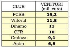 Campioana Ligii 1 anul trecut a fost Viitorul. Surpriza imensă realizată de echipa de la malul Mării i-a adus clubului lui Hagi un profit impresionant la finalul lui 2017. Veniturile au fost cu 3,5 milioane de euro mai mari decât cheltuielile. Excedentul e unul realmente imens fiindcă veniturile nu au fost nici măcar la nivelul celor de la FCSB.