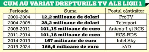 28.000.000 €fără TVA, e suma anuală pe care s-au vândut drepturile TV ale Ligii 1