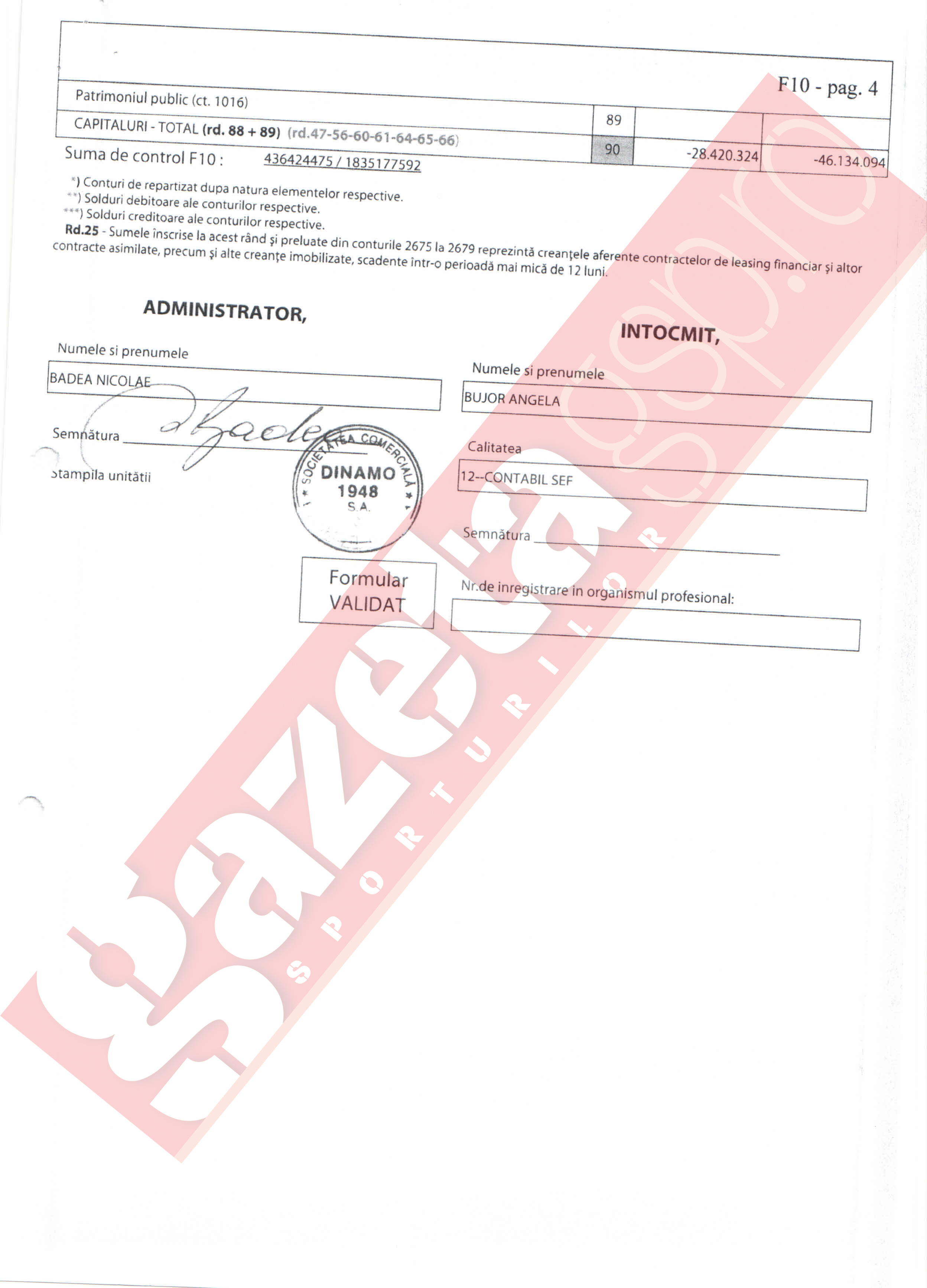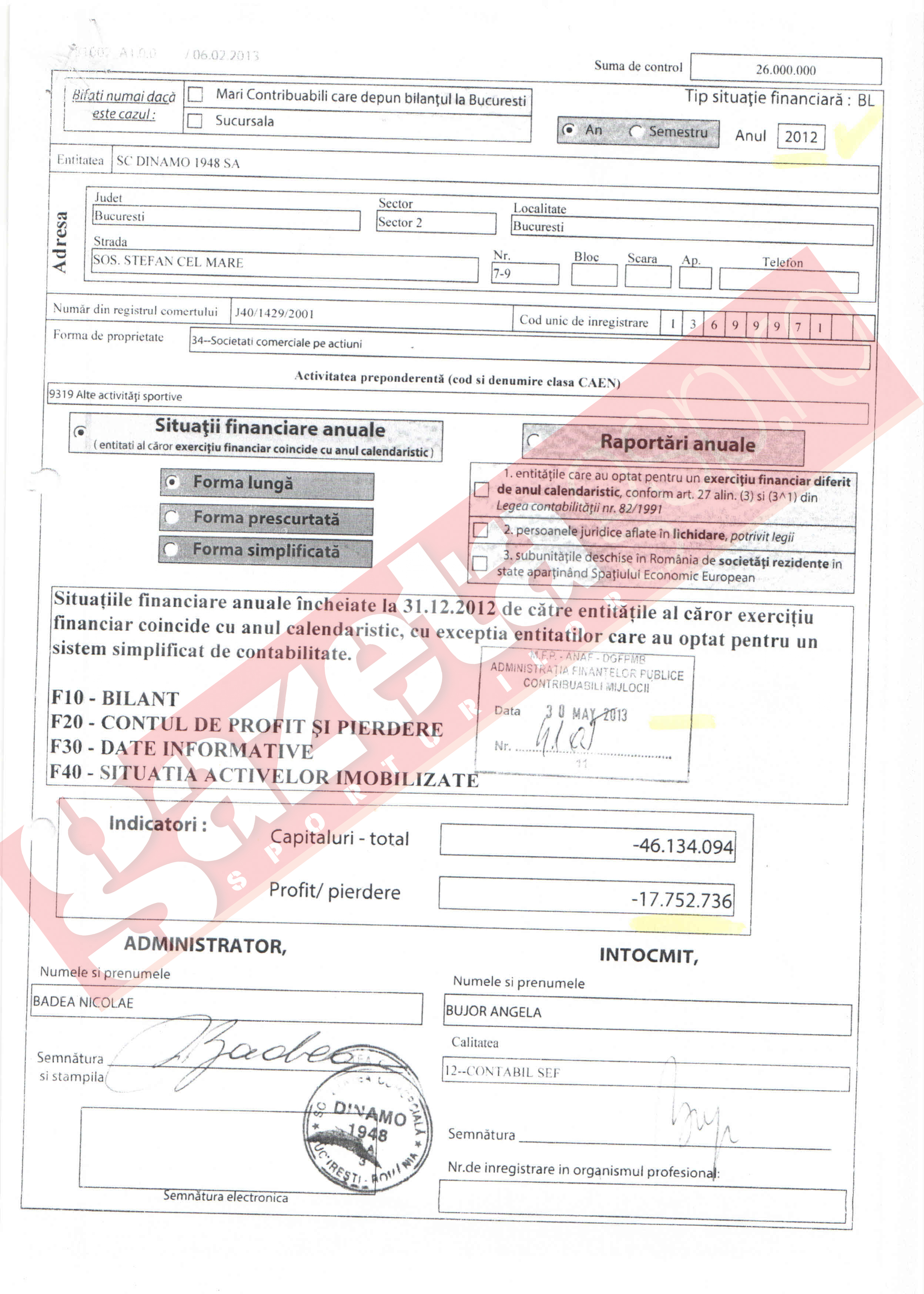 Doar că documente obţinute de Gazeta Sporturilor şi care au fost înregistrate la ANAF, semnate de fostul preşedinte al CA, Nicolae Badea, atestă o cu totul altă realitate.