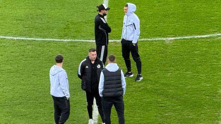 Jucătorii celor două echipe au ajuns la stadion într-o stare relaxată. Atmosferă bună înaintea meciului din ultima etapă a sezonului regulat.