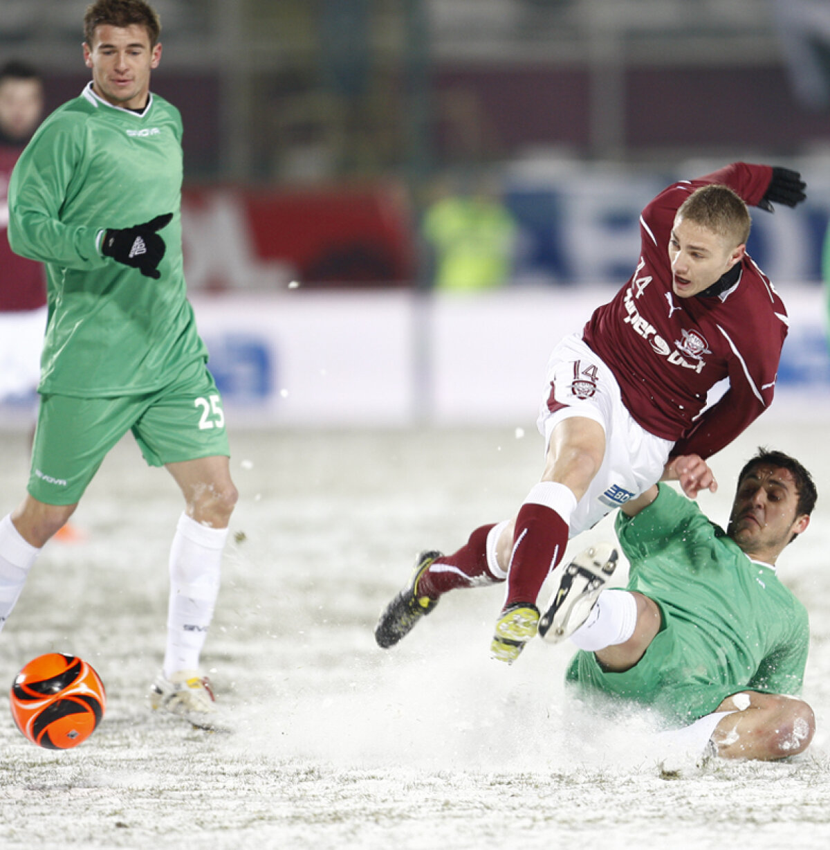 : Mihai Roman controlează cu greu un balon în meciul cu Urziceni