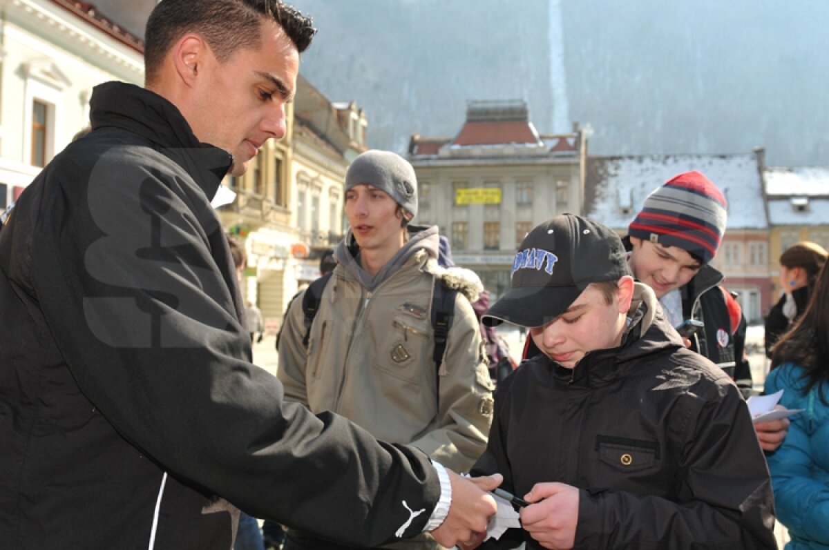 : Fotbaliştii echipei FC Braşov au oferit flori femeilor în centrul oraşului (foto: Balasz Bodor)