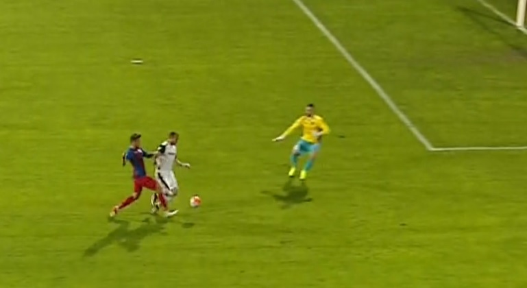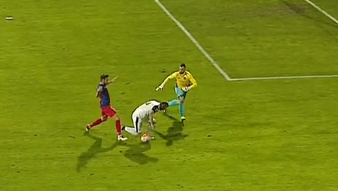 Pana la penalty , a fost ofside la Alibec .La TV regizorul a dat faza , dar comentatori n-au zis nimic .S-a vazut clar pozitia lui Alibec in momentul pasei si a fost ofsaide clar .