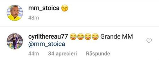 Gluma lui MM a fost "gustată" de Cyril Thereau, fostul atacant al roș-albaștrilor, care i-a lăsat un comentariu la postare: "Grande MM".