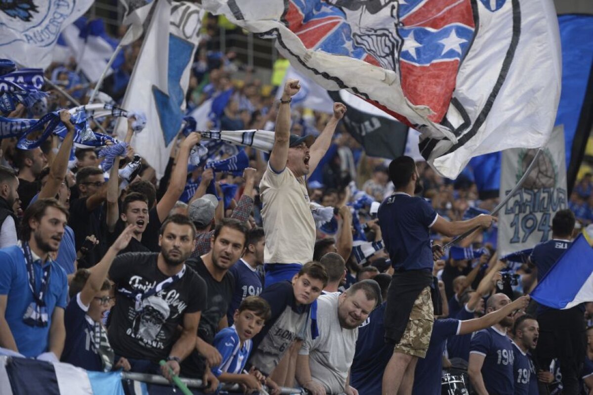 Spre seară, show-ul l-au asigurat oaspeții. Pe Arena Națională au venit peste 2.000 ultrași ai Universității, care au cântat permanent, iar la mijlocul primei reprize au afişat un banner care spune totul despre spiritul unui suporter oltean: "Fiind copii nu păduri cutreieram, ci stadioane / De mână cu cei ce peste ani te vor susţine în bastoane / Cei care au ştiut că-n lumea noastră ar fi pustiu / Fără spiritul alb-albastru moştenit din tată-n fiu".