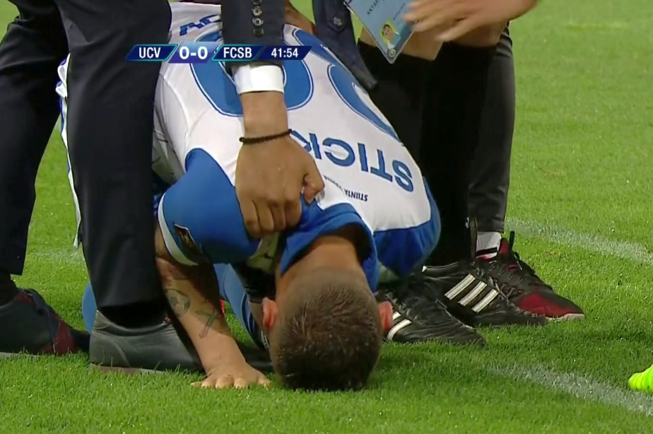 Două minute mai târziu, un alt eveniment a încins atmosfera la Craiova. Dimitrov căzut în apropierea băncii de rezerve a celor de la FCSB, moment în care Nicolae Dică a intervenit și a încercat să-l ridice de pe gazon. Bulgarul a stat mai multe secunde la pământ și în cele din urmă s-a ridicat după ce a intervenit arbitrul.
