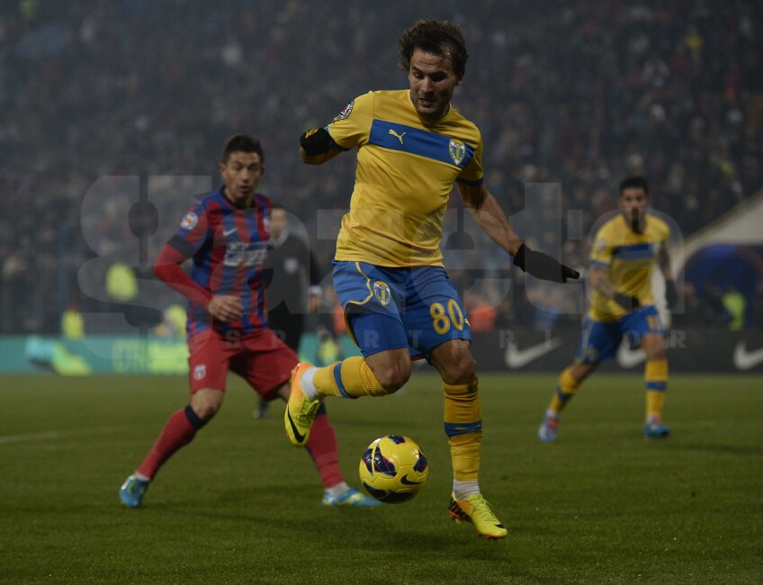 Steaua a condus la pauză, 1-0, după o repriză mediocră. Teixeira le-a dat ceva bătăi de cap steliştilor prin cursele sale încheiate însă cu şuturi pe lîngă poartă.
