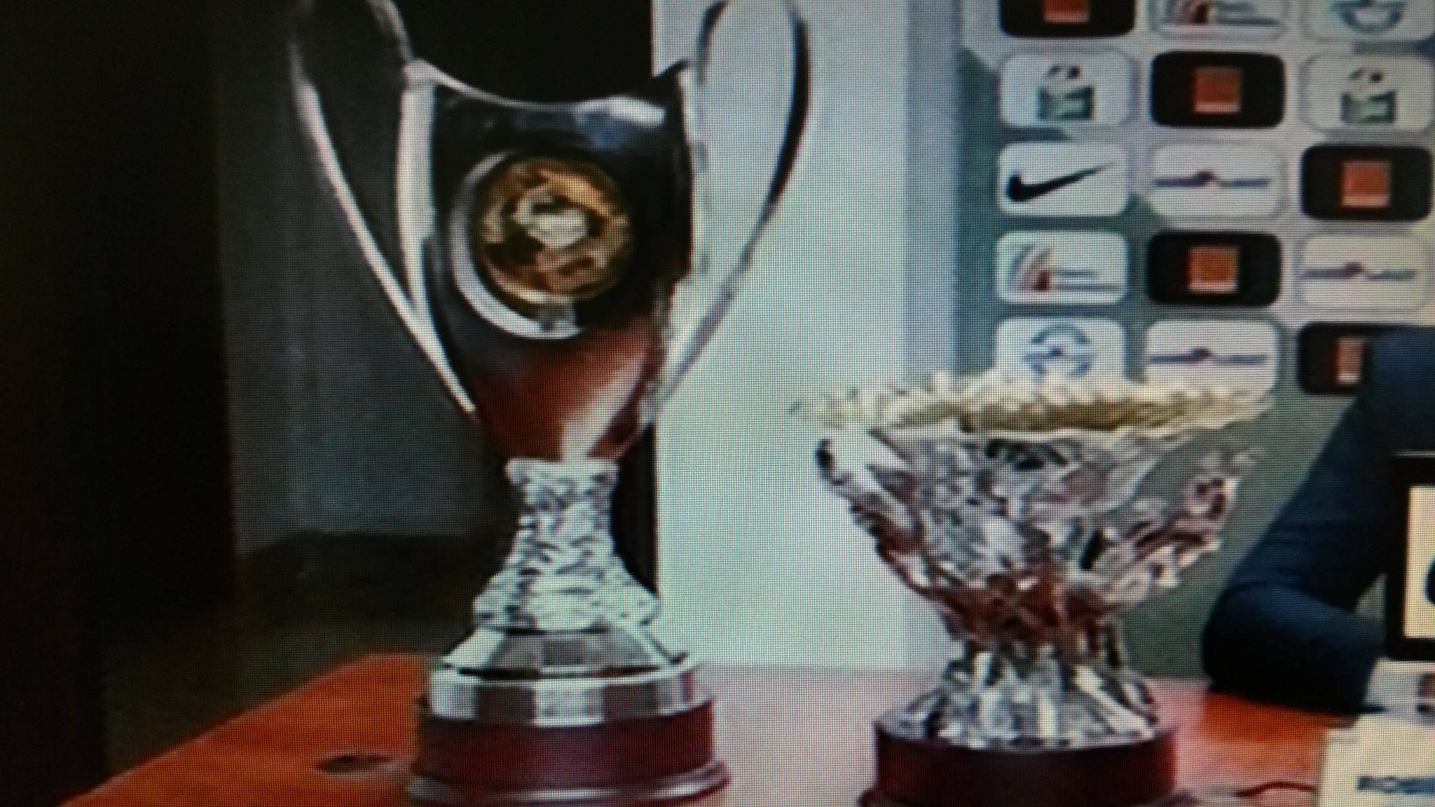 Trofeul din dreapta îl va primi echipa care va câștiga campionatul, iar cel din stânga este pentru câștigătoarea Cupei Ligii.
