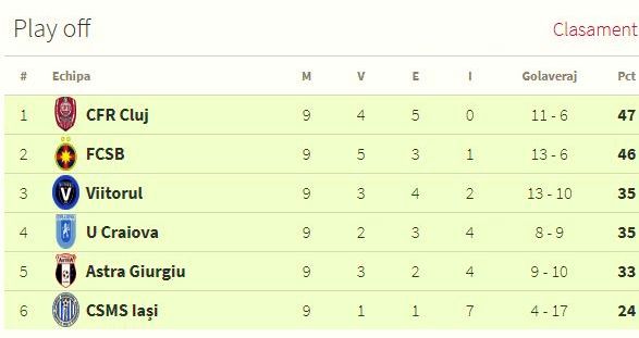 Clasament final play-off!