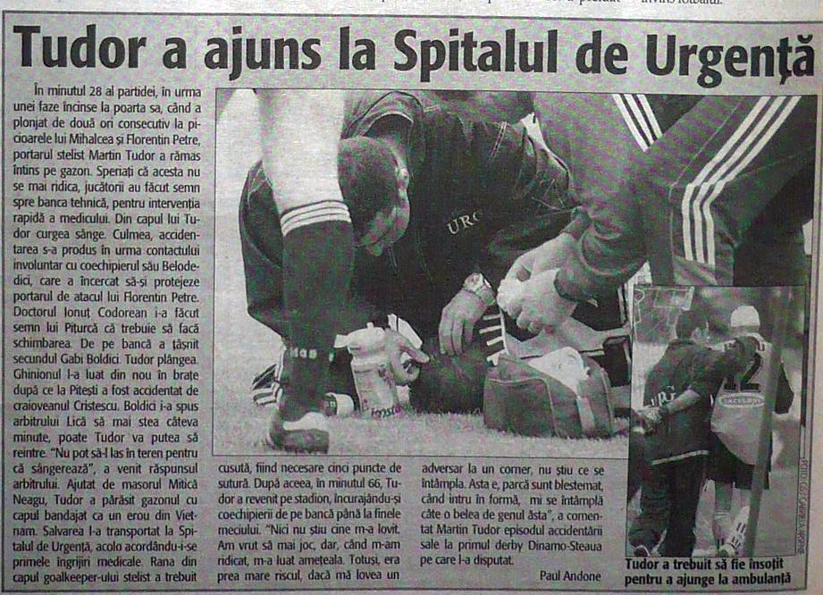 Ce a șocat cel mai mult în acel meci? Accidentarea portarului „militar” Martin Tudor, serios comoționat în urma unui duel. Tudor a fost înlocuit cu Tibi Lung, care a greșit și a facilitat victoria lui Dinamo.