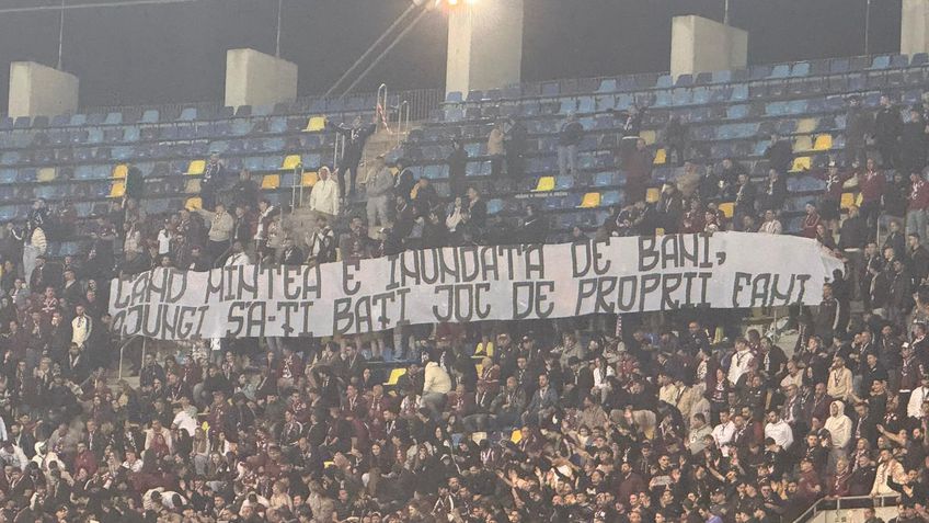 Rapidul continuă să facă un play-off sub așteptări, iar fanii și-au pierdut răbdarea. Duminică, prin intermediul unui banner afișat în prima repriză, suporterii giuleșteni au acuzat jucătorii că nu și-au apărat corect șansele și că ar juca la pariuri. Etapa trecută, echipa a pierdut în Bănie, 0-1.