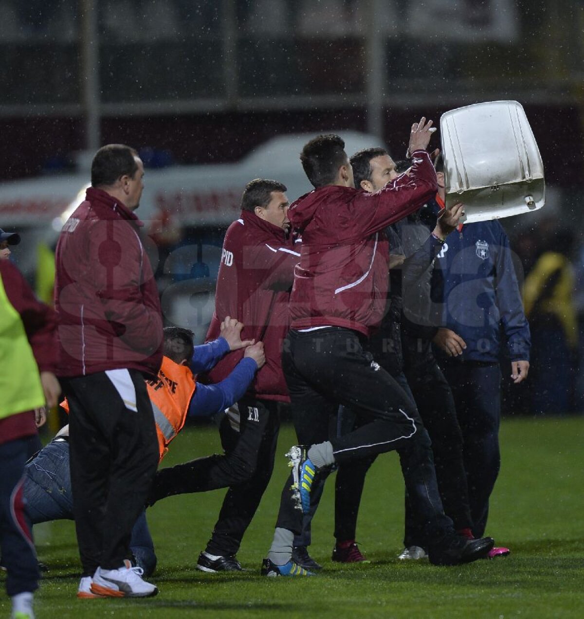 Galerie foto » Scaunul discordiei » Imagini incredibile cu faza la care MM şi rapidiştii s-au încăierat pe margine