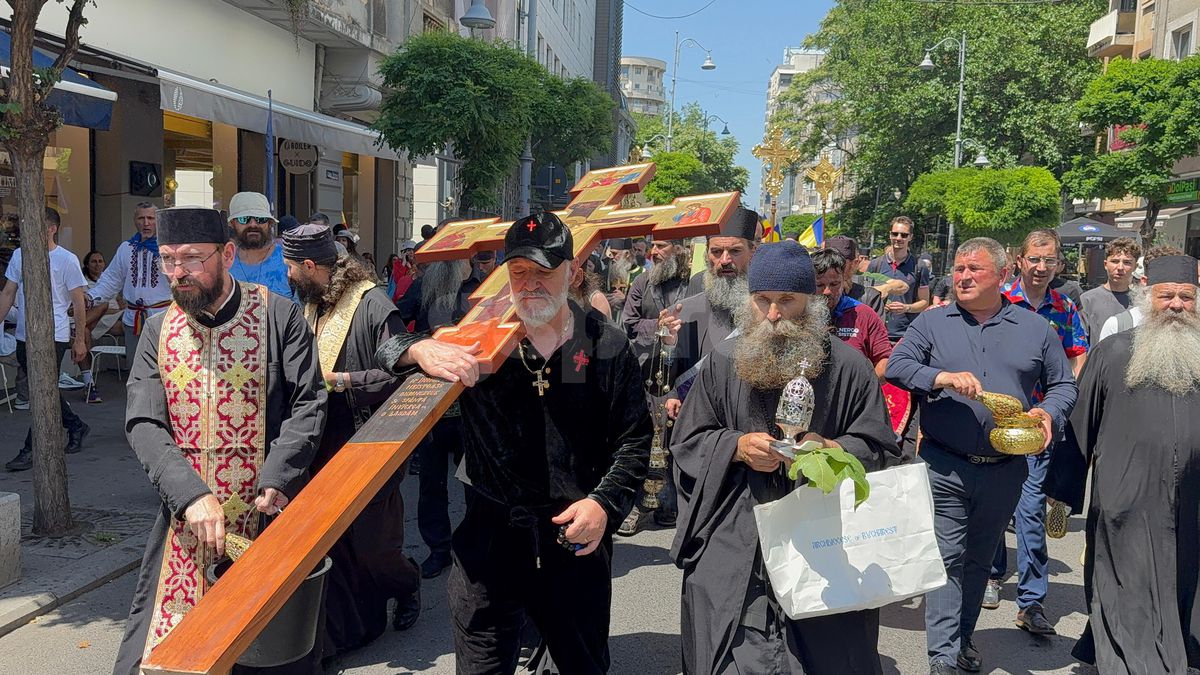 Gigi Becali a ieșit pe Calea Victoriei să „curețe” cu agheasmă după marșul LGBT: a purtat o cruce uriașă, apoi s-a oprit și a cântat