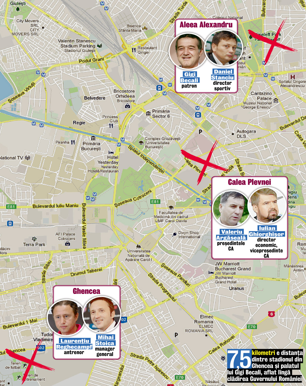 7,5 kilometri e distanţa dintre stadionul din Ghencea şi palatul lui Gigi Becali, aflat lîngă clădirea Guvernului României