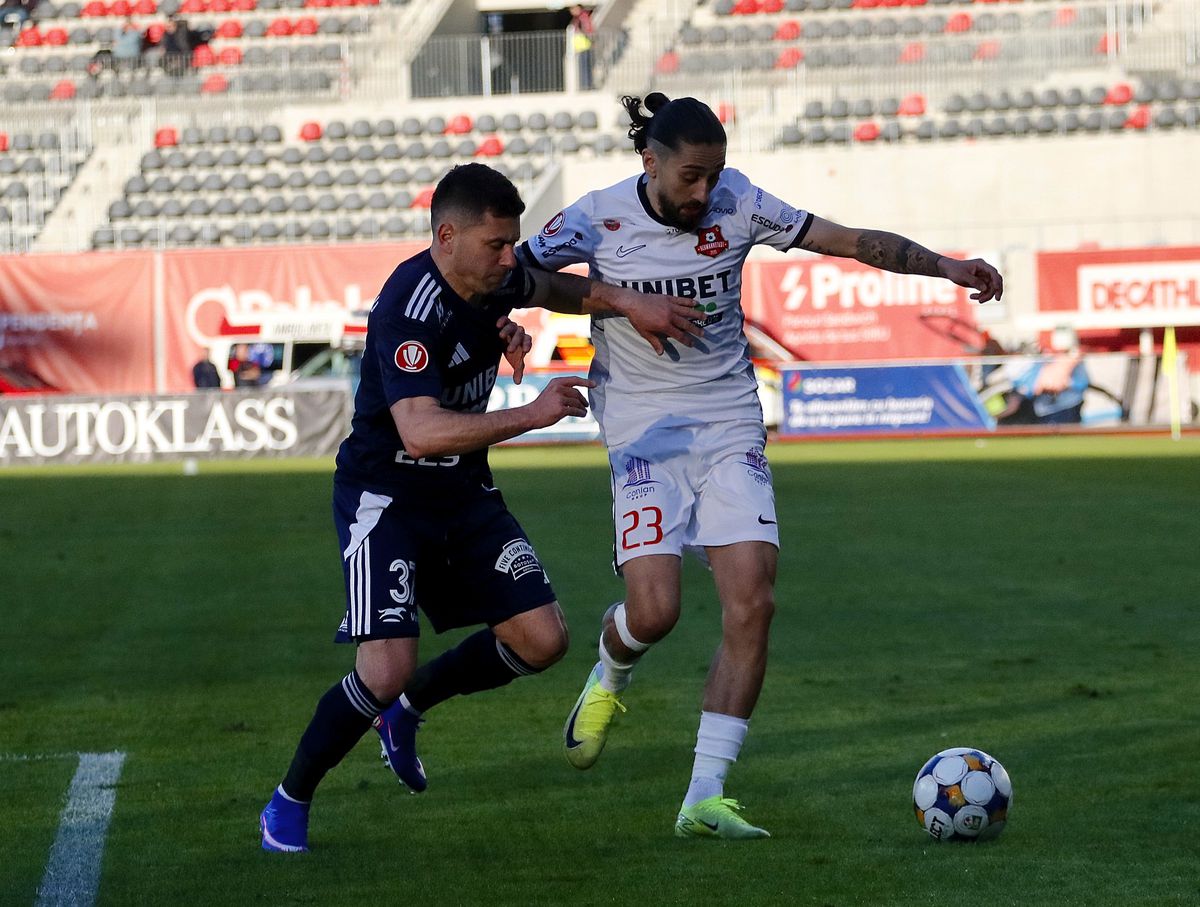 min 15: Hermannstadt trece pe lângă 1-0. Chițu a pasat în fața porții, către Neguț, dar Pavlovici a intervenit și a scos mingea din fața porții