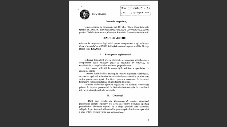 În documentul semnat de Bolojan se specifică faptul că „nu am identificat în textul Legii nr. 69/2000 dispoziții care să impună alegerea sportivilor în echipele de performanță în funcţie de criteriile anterior precizate. Prin urmare, ar fi fost necesară completarea Expunerii de motive cu informații din care să rezulte cu claritate contextul actual”.