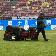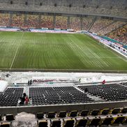 Starea gazonului de pe Arena Națională este vizibil afectată după ninsorile din ultimele 24 de ore.