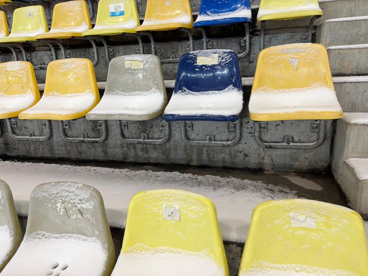 Un lucru e cert, nu se va sta jos in tribune. Scaunele sunt acoperite cu zăpadă, iar spectatorii vor avea dificultăţi. De asemenea, se aluneca foarte tare pe culoarele dintre scaune.