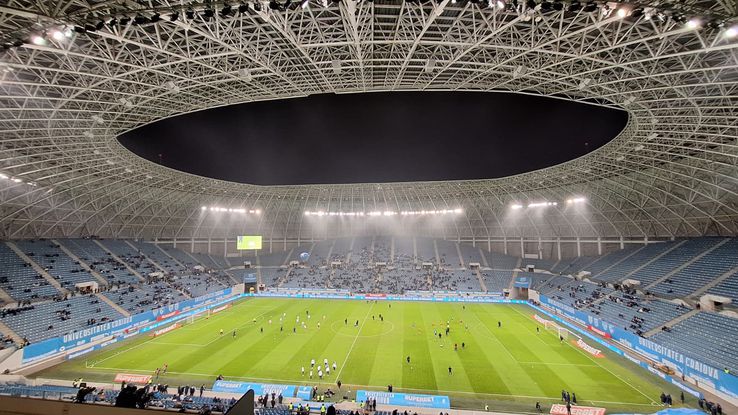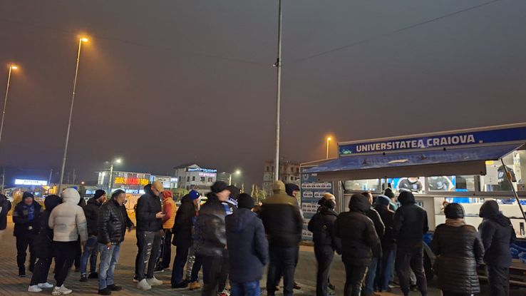 Liniște la Craiova cu mai puțin de o oră până la primul fluier al ultimului meci din anul 2025 în Superliga. Sunt câteva grupuri de suporteri în jurul stadionului, încă se achiziționează bilete de la magazinul mobil situat pe esplanadă. Atmosferă frumoasă, în ciuda vremii. Este destul de frig și a început să bată vântul. Spectatori de toate vârstele, copiii cei mai fericiți.