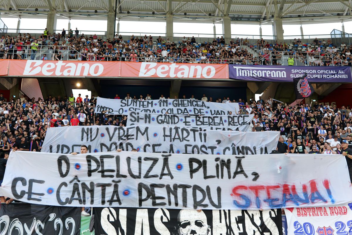 : Mesajul apărut în peluza FCSB-ului la meciul cu CFR Cluj din Supercupa României
