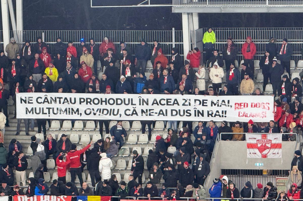 „Ne cântau prohodul în acea zi de mai, mulțumim, Ovidiu, că ne-ai dus în Rai!”, a fost mesajul afișat de suporterii lui Dinamo pentru Ovidiu Burcă, tehncianul care i-a readus pe „câini” în Superligă.