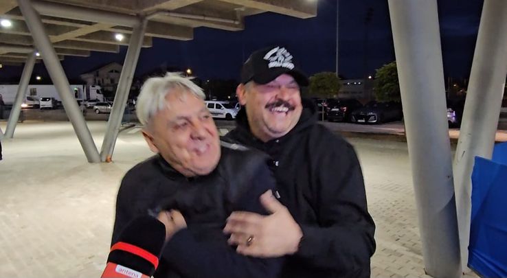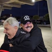 Mare fan al oltenilor, Mihai Bobonete dădea declarații înaintea meciului Universitatea Craiova - Dinamo, timp în care a fost întrerupt de Sorin Cârțu, președintele onorific al clubului, și patronul Mihai Rotaru.